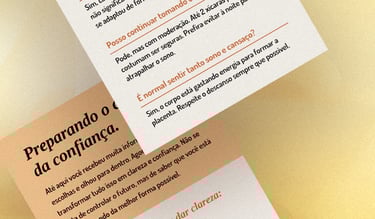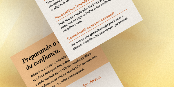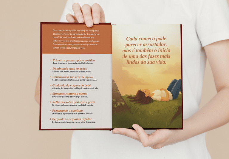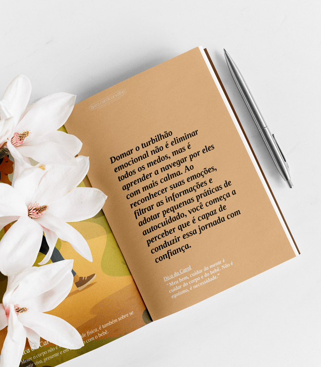Cada página foi escrita pra te mostrar que você não precisa se cobrar tanto. Que é possível curtir o momento e confiar no seu corpo. E que uma gravidez tranquila começa na mente e não só no corpo.