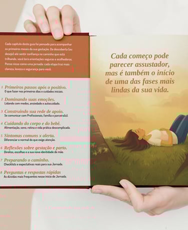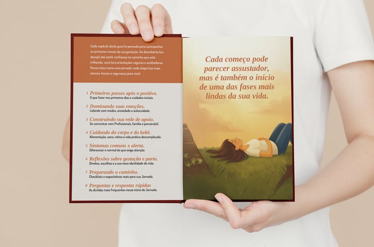 Cada página foi escrita pra te mostrar que você não precisa se cobrar tanto. Que é possível curtir o momento e confiar no seu corpo. E que uma gravidez tranquila começa na mente e não só no corpo.